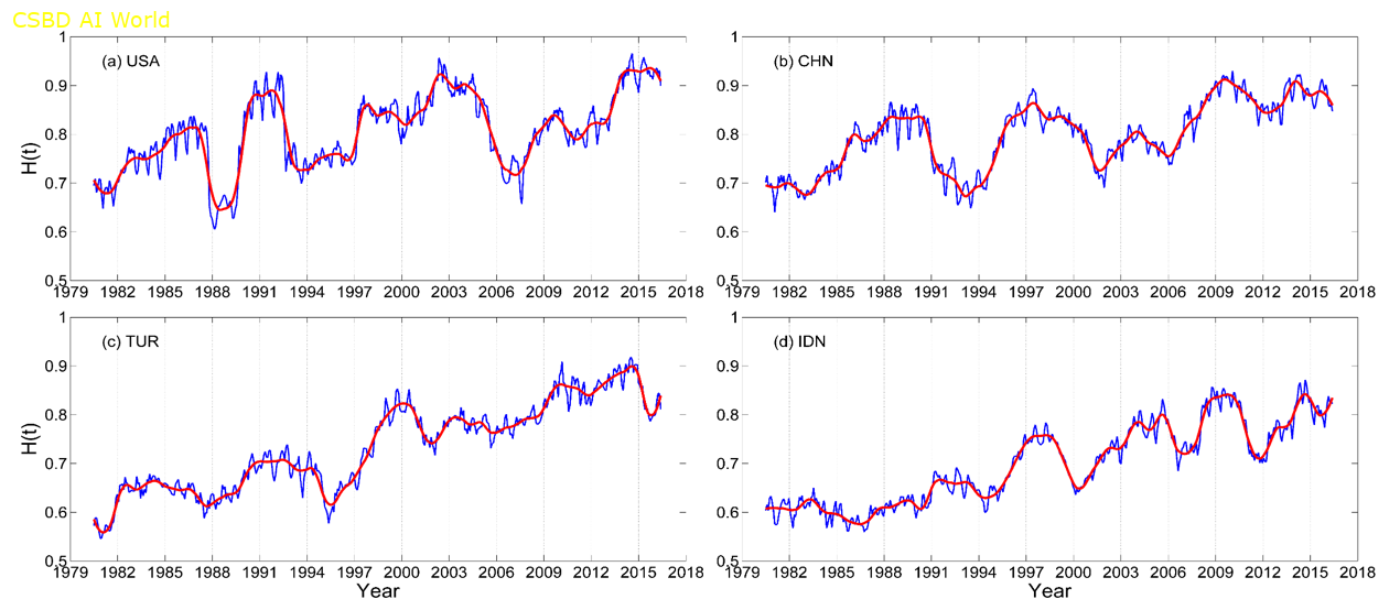 图4 随机分形理论刻画各国历史(Hurst指数)