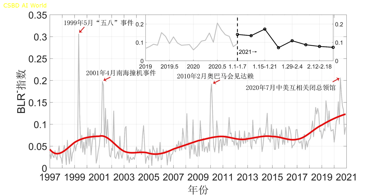 本团队通过系统分析全球新闻媒体大数据(GDELT),我们已经发展了三个能连续监测、预警双边关系、各国内政演化、及全球风险时空演变的指数。这些方法分别基于概率统计、信息论、和复杂性科学。它们既独立又能互相印证。我们同时发展了一个新的基于全球阶层的关于霸权、经济发展、世界秩序和国际合作的理论,由此可以推断中美关系会如何演进。