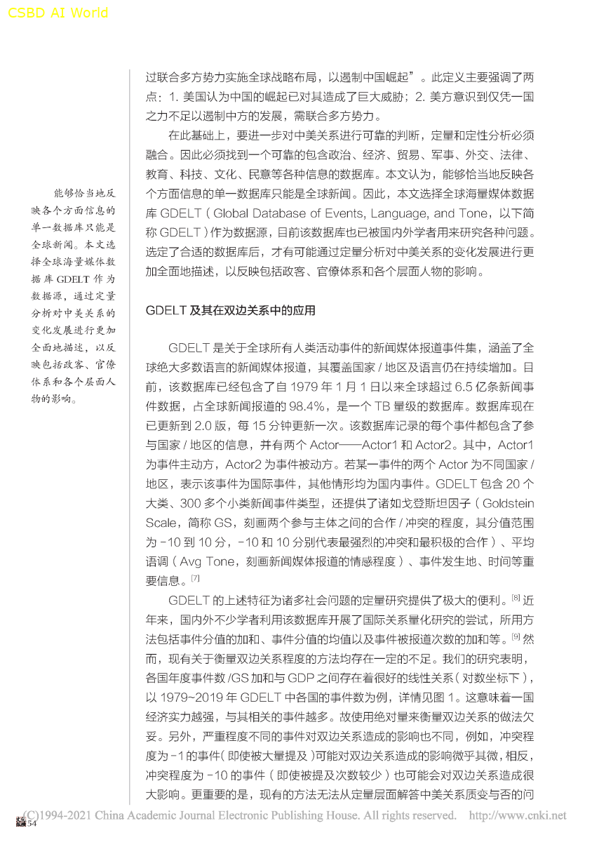 基于GDELT海量媒体数据的双边关系指数